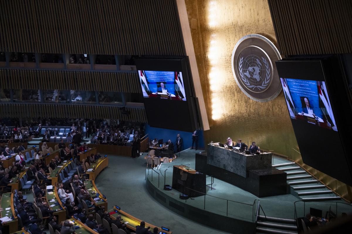 A través de una pantalla -debido a que Donald Trump le rechazó el visado- el presidente de la Autoridad Palestina, Mahmoud Abbas, ha comparecido ante la comunidad internacional en la tercera jornada de la Asamblea General de la ONU, celebrada en Nueva York.