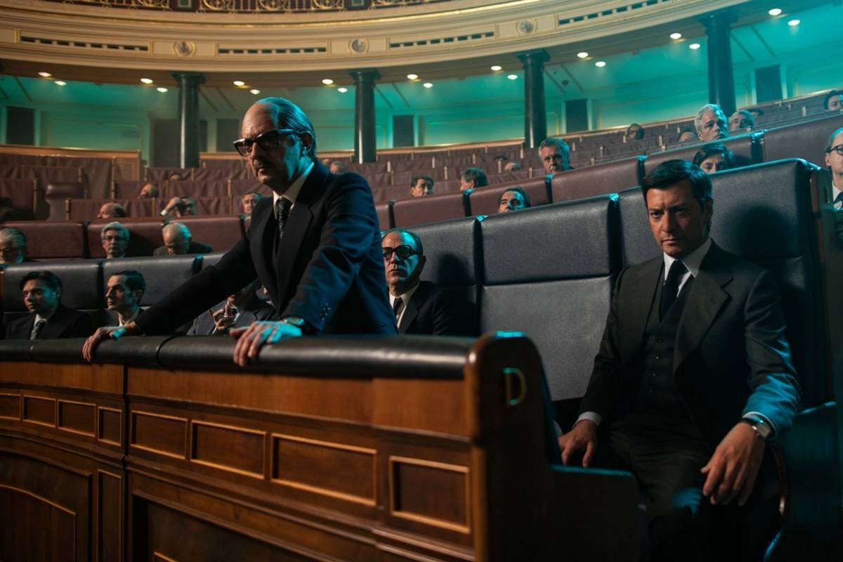 Cobos y Rodríguez llevan años empeñados en leer la parte de atrás de la Transición. Grupo 7 discurría por el otro lado del muro que levantó la Expo para separar lo que convenía que se viera de lo que no; La isla mínima se detenía en un rincón perdido del sur varado para siempre, y sin transiciones, donde sucedía la otra barbarie que no es más que la de siempre; El hombre de las mil caras arrojaba luz de forma casi violenta sobre el cuento mal contado del Estado y sus otras cosas, sus desagües, y Modelo 77 miraba donde nadie había mirado nunca: la cárcel. Se diría que ahora, Rodríguez y Cobos cambian el punto de vista y miran de frente, sin dobleces, detrás del último unicornio de aquellos tiempos: el consenso, el entendimiento, el bien común.
