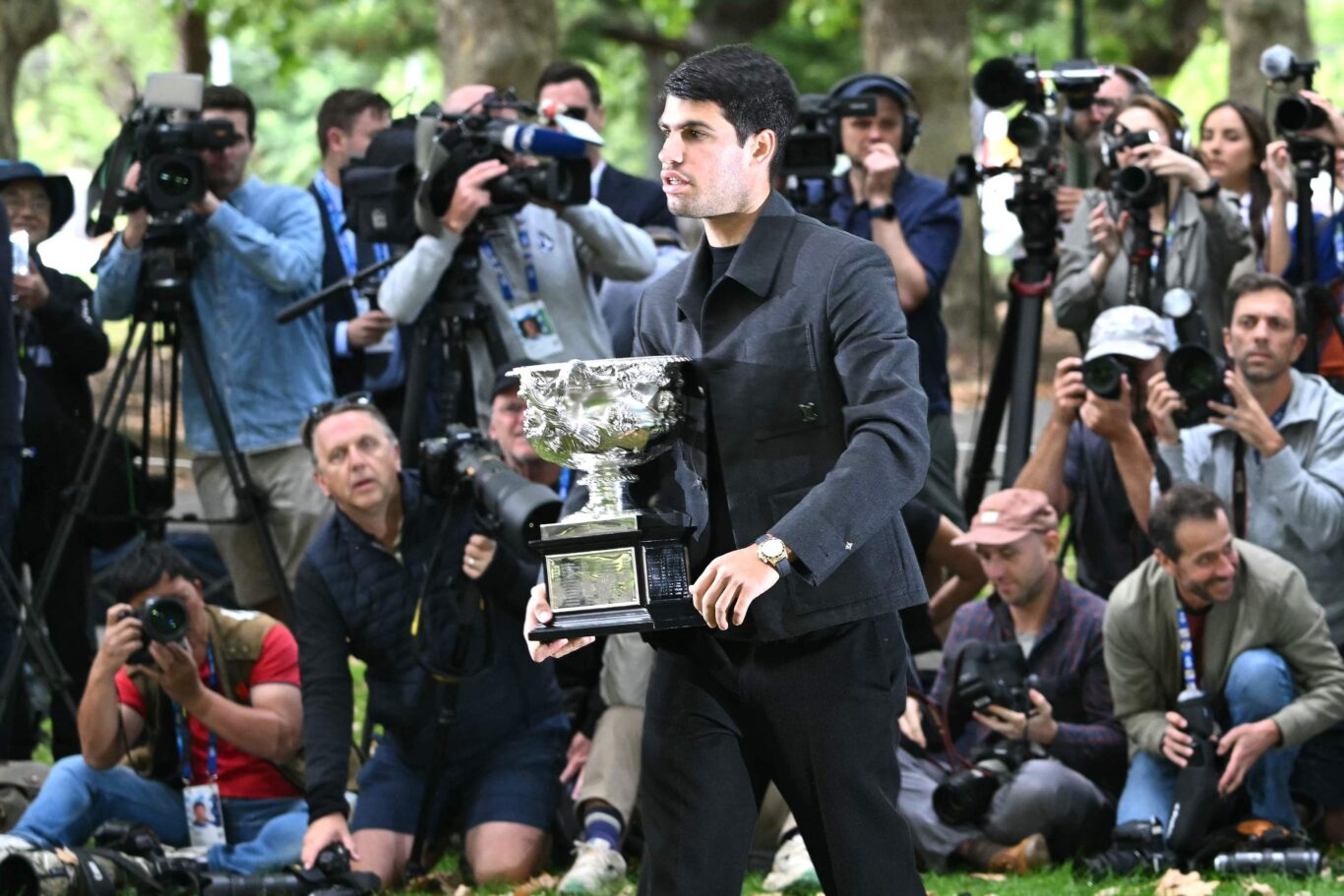 Una hora antes de que llegue Carlos Alcaraz, los fotógrafos ya están haciendo pruebas en los jardines del Royal Exhibition Building de Melbourne. «Ponte aquí», le piden al periodista más madrugador, y él se pone. Más tarde, cuando el campeón del Open de Australia aparece con cara de sueño, todo sucede a una velocidad de vértigo. Ya acostumbrado a estas artes, Alcaraz posa, posa, posa y vuelve a posar con su traje de Louis Vuitton, saluda a los aficionados que le esperan y se entrega a sus últimos compromisos antes de volar de vuelta a casa, por fin.