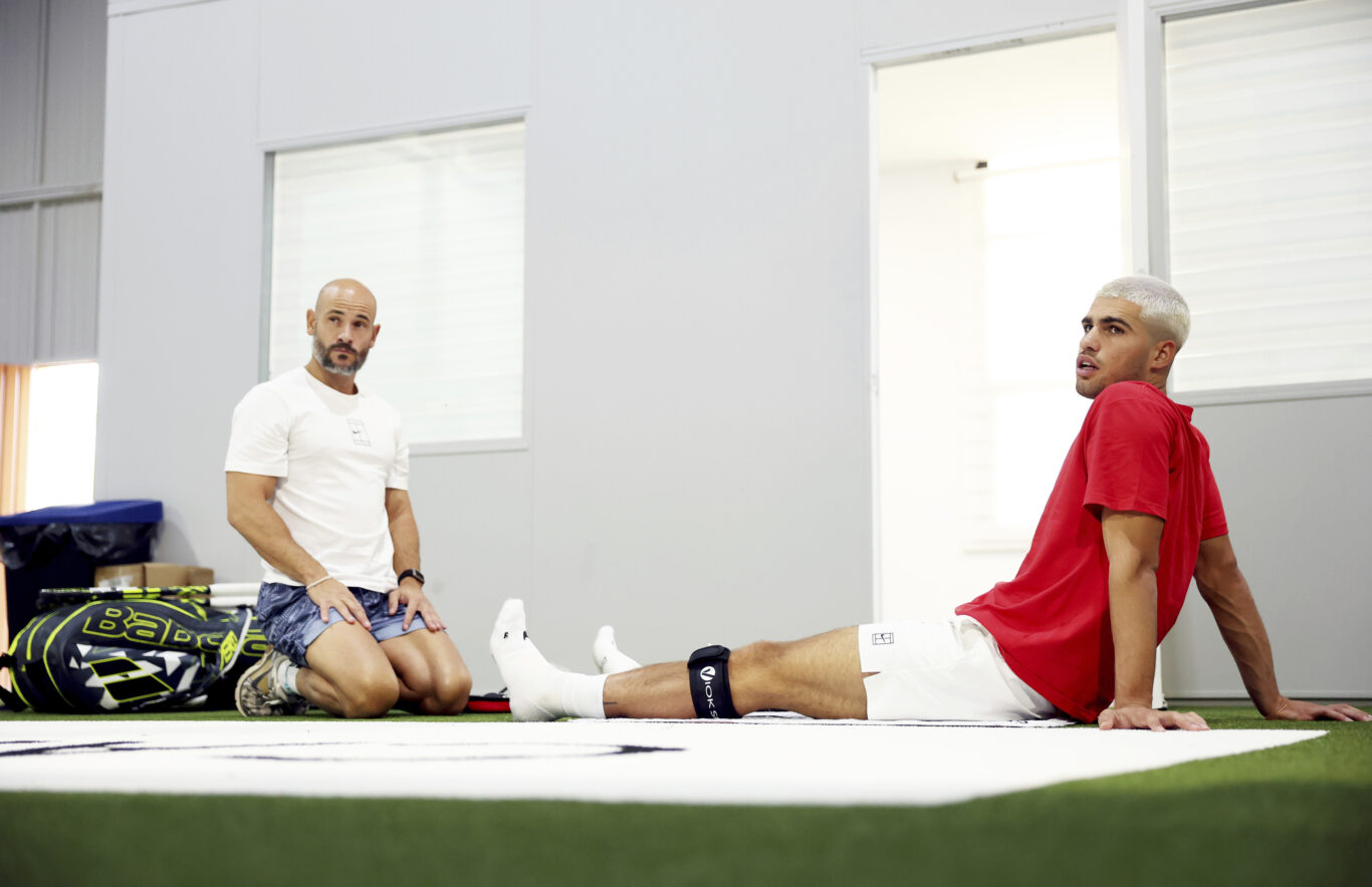 Aparece Carlos Alcaraz en un entrenamiento en el Inalpi Arena de Turín, el enorme pabellón que acoge las ATP Finals, y realiza el calentamiento bajo las órdenes de su fisioterapeuta, Juanjo Moreno. Nada raro, todo normal en el último torneo de la temporada, excepto unas cintas negras debajo de sus rodillas. Con ellas puestas realiza apenas un par de ejercicios de movilidad, Moreno se las quita y ya entonces el tenista agarra la raqueta para empezar a golpear bolas. ¿Qué son esas cintas? ¿Arrastra Alcaraz alguna lesión? Más bien todo lo contrario. Esas cintas se llaman bandas de oclusión o bandas BFR -las siglas de blood flow restriction-, se utilizan para restringir el flujo sanguíneo en las extremidades del cuerpo y sirven tanto para fortalecer la musculatura como prepararla para los partidos.