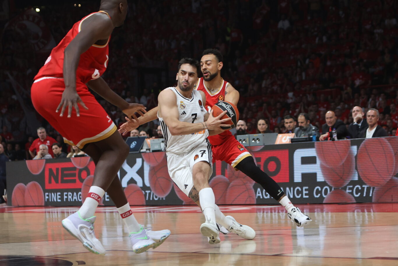 La realidad fue un sopapo para un Madrid que pretendía piel de oveja para medirse al que de verdad era lobo. Todas las buenas intenciones mostradas tras la final perdida de Copa quedaron esparcidas por el suelo de Atenas como un puñado de folios. Frustración y sensación de inferioridad permanente ante el Olympiacos del infalible Vezenkov (23 puntos y siete rebotes), al que debe ganar ahora tres partidos de cuatro -el siguiente, el viernes- para no caerse de la Final Four.