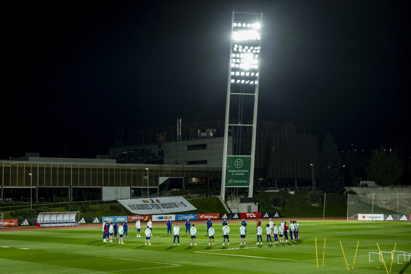 Y el 12 de noviembre, llegó el frío a Madrid. Seguramente a muchos más lugares de España, pero a Madrid, a Las Rozas, que está al norte de Madrid, más bien cerca de la sierra, llegó el frío. Mucho. Muchísimo. Y como resulta que en noviembre, sea el día que sea, a las siete de la tarde es de noche, ese cóctel, frío y noche, deslució un poco el homenaje que la Federación, a través de la selección absoluta, le hizo a las víctimas de la DANA en Valencia y Albacete. Alrededor de 300 personas se abrigaron como pudieron para ver el primer entrenamiento del equipo de Luis de la Fuente en Madrid (sólo hará dos, el otro es hoy).