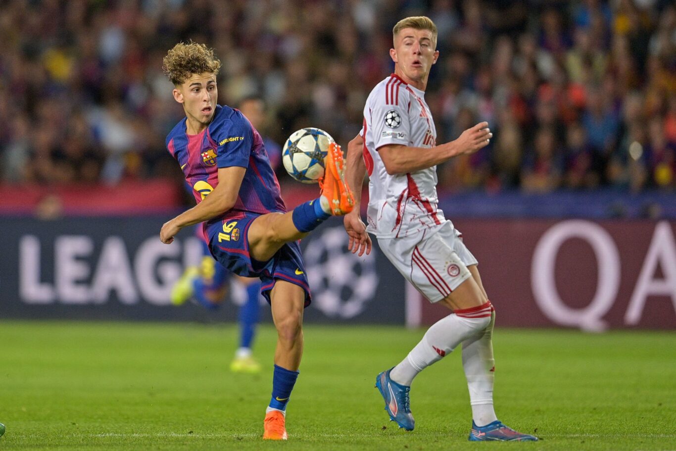 «Marca, corre, es muy completo. Ha sido sensacional su actuación. Marcó tres goles, el primero de ellos muy importante, porque nos dio confianza. Lo tiene todo: es dinámico y muy veloz», le elogió Hansi Flick tras el 6-1 frente al Olympiacos. El propio Fermín se mostró muy ilusionado con su primer hat trick como profesional. Cómo no, se llevó a casa el balón, firmado por todos sus compañeros.