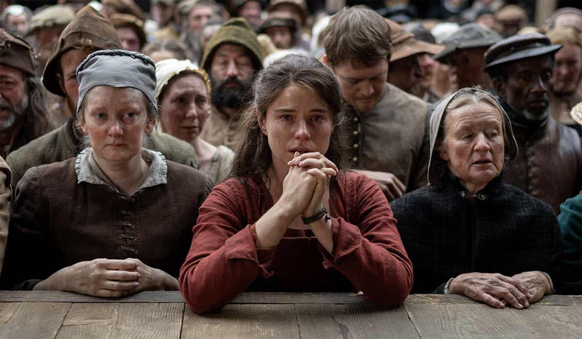 Por ello, no es casual que Zhao haya elegido la más conocida de las obras del Bardo de la mano de la memorable relectura a la que la somete O’Farrell para rematar su plan, ahora sí, maestro. Hamnet es nada más que una historia de amor, pero siempre desde el punto de vista de ella. En el libro es mucho más acusada y evidente la mirada de ella. Él es, aunque nunca se mencione por su nombre, William Shakespeare y ella es Agnes, que no la Anne Hathaway que dicen los libros de historia. Ella vive en contacto con una naturaleza que se abre a sus pies como un don, un regalo, un reino inconquistable. La primera imagen nos enseña a la protagonista encarnada de manera monumental por Jessie Buckley en un plano cenital al pie de una cueva profunda como profecía de todo lo que vendrá. Él, al que da vida un Paul Mescal condenado a quedar eclipsado por su compañera de reparto, es profesor de gramática al que la vida le reserva un único y no elegido futuro en el negocio del padre confeccionador de guantes. Se conocen, se desean y consuman su amor como solo se consuman las revoluciones. Solo así, la honorable familia de él consentirá el matrimonio. Luego llegará la primera hija y, más tarde, los mellizos, uno de ellos llamado Hamnet, con N. Y luego llegará el éxito y lo demás.