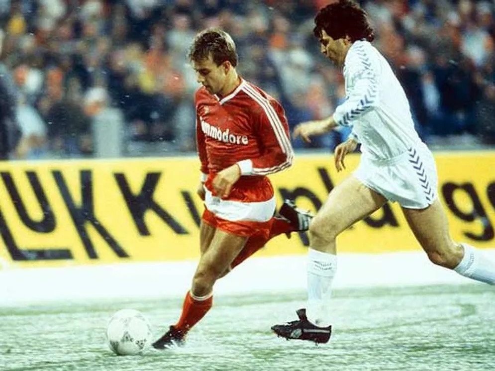 A los 41 años, el sustituto de Udo Lattek debía gestionar los egos del vestuario, la retirada de Uli Hoeness y las urgencias de un club apremiado por su historia. Tras la derrota en la final de la Copa de Europa ante el Oporto, donde Flick también salió en la célebre fotografía del taconazo de Rabah Madjer, el Bayern sabía de la trascendental importancia de ese cruce ante el Real Madrid. Así que cuando Alexis Ponnet señaló el final, cumplidos los seis minutos de añadido, su compatriota Pfaff quiso enseñarle los tacos de Hugo Sánchez marcados en su costado. Por esa herida supuraba la decepción de Heynckes, que se sabía muy superior a Steaua, Benfica y PSV, los otros semifinalistas. El bofetón anímico fue tan duro que el Bayern se dejó puntos en seis de las últimas 11 jornadas de la Bundesliga, que terminaría en poder del Werder Bremen. Flick, de 23 años, sólo disputó cuatro de esos partidos como titular.