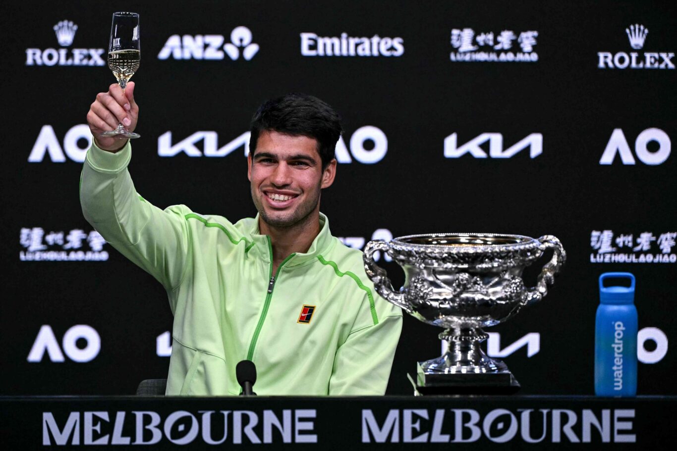 «Sabe bien», aseguraba y, la verdad, es que sí: sabía bien. Durante la atribulada celebración de su Open de Australia, Carlos Alcaraz ofreció champán a los periodistas desplazados a Melbourne y se permitió tomar un trago de una de las copas. «No bebo más, que esto es un non stop«, comentaba en pleno trajín. Ser campeón de un Grand Slam es un duro trabajo. Desde que recibió la copa de manos del australiano Mark Edmondson -qué oportunidad perdida que no lo hiciera Rafa Nadal– hasta que se marchó a su hotel, Alcaraz anduvo arriba y abajo por el edificio Centerpiece del Melbourne Park.