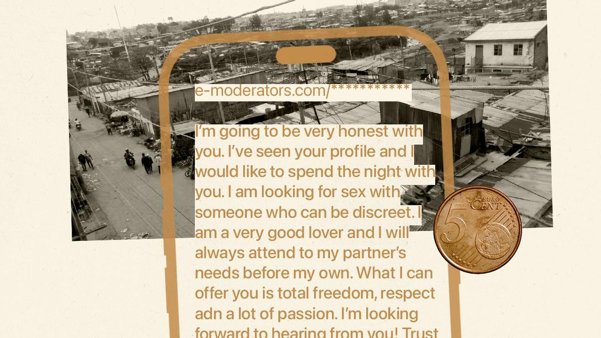 “Cuando iniciaba sesión en mi panel de trabajo, tenía acceso a múltiples perfiles falsos de varios géneros; normalmente de tres a cinco personajes diferentes que podía manejar simultáneamente. A veces tenía que operar personajes masculinos y femeninos en el mismo día, dependiendo de lo que los usuarios de la plataforma estuvieran buscando”, relata Michael Geoffrey Asia, un trabajador que desempeñó este trabajo en Nairobi.