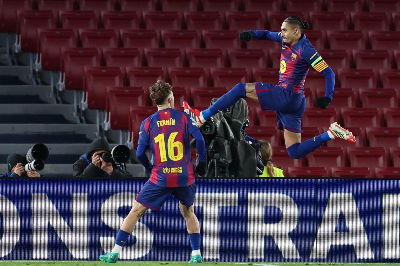Se afianzó más cuando Benoit Bastien, y el VAR, no dudaron en pitar un extraño penalti de Suzuki sobre Lewandowski. El polaco se había acomodado con el pecho un centro de Lamine y pareció rematar al aire, un error imperdonable, pero el árbitro francés vio penalti y nadie le rectificó. Ayuda o no, Raphinha lo convirtió en el tercero para la cuenta azulgrana.