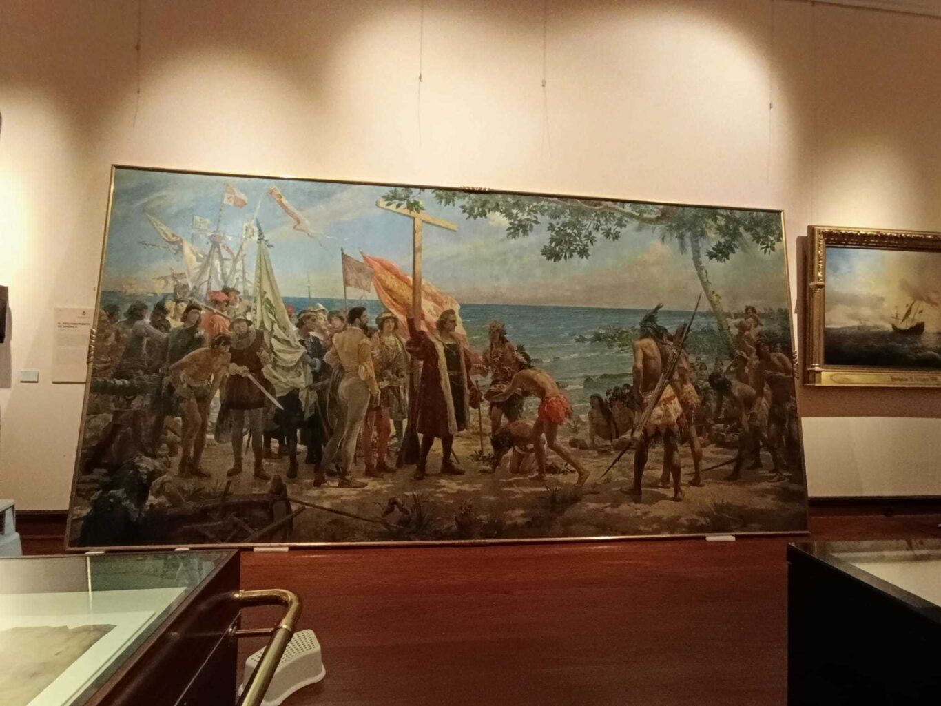 La acción del colectivo ha dañado la mitad izquierda del cuadro ‘Primer homenaje a Cristóbal Colón’, de José Garnelo, que se encuentra a la entrada del edificio.