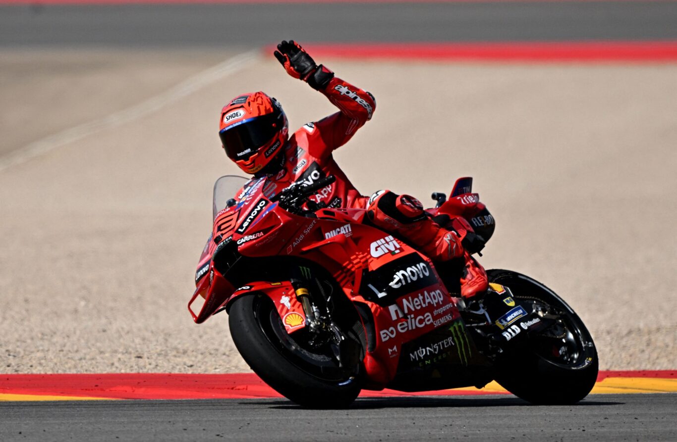 Marc Márquez está volviendo a dominar con puño de hierro el Gran Premio de Aragón. El piloto de Ducati ha logrado imponerse con contundencia en el que es uno de sus circuitos fetiche de todo el calendario, donde ha sido capaz de construir un legado que será eterno y al que se le suma la victoria en la sprint de hoy.