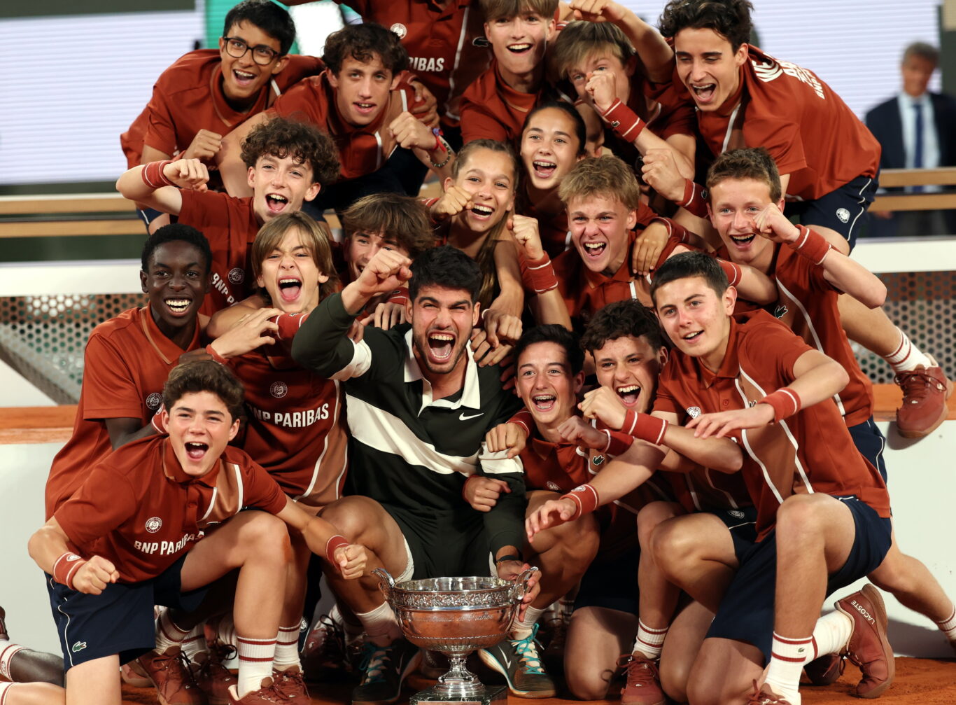Una vez certificó su remontada antológica ante Jannik Sinner, Alcaraz se estiró boca arriba en la tierra batida de París y subió rápido a abrazar a los suyos. El primer abrazo fue para su entrenador, Juan Carlos Ferrero, a quien incluso le saltó encima. Luego el resto de miembros de su equipo. Y finalmente todos los amigos y familiares, los muchísimos amigos y familiares.