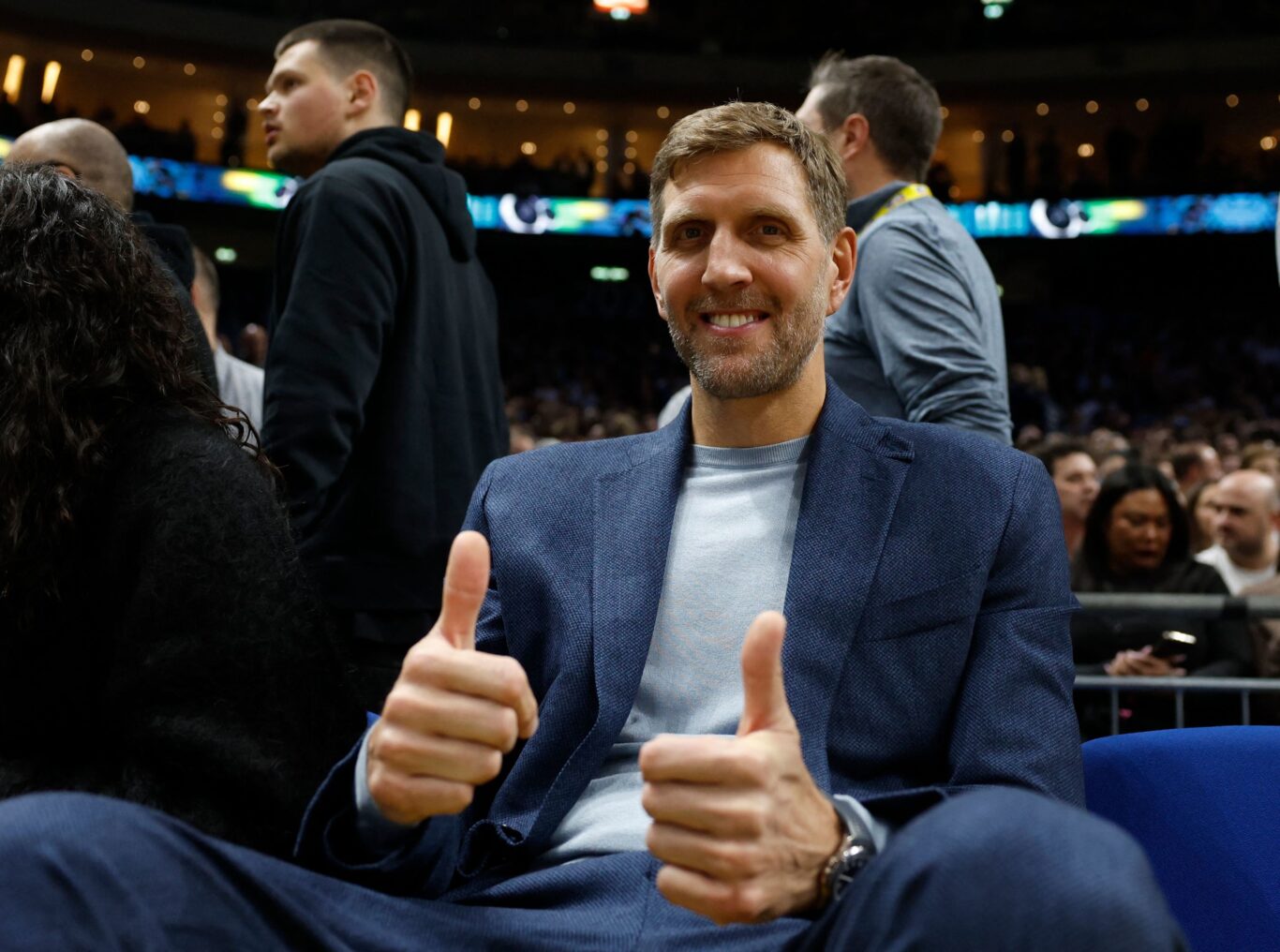 Dirk Nowitzki (Würzburg, Alemania, 1978) pasea elegancia por las entrañas del impresionante 02 Arena de Londres, donde el pasado domingo se enfrentaron en partido oficial de la NBA Magic y Grizzlies. Casi la misma que desplegaba hasta hace unos años en las canchas. En la era donde los europeos dominan la NBA, él sigue aguantando el trono, campeón en 2011 con los Mavericks, MVP 2007… Acude a la entrevista después de jugar al pádel con Steve Nash, pareja de lujo de comentaristas NBA de Amazon Prime.
