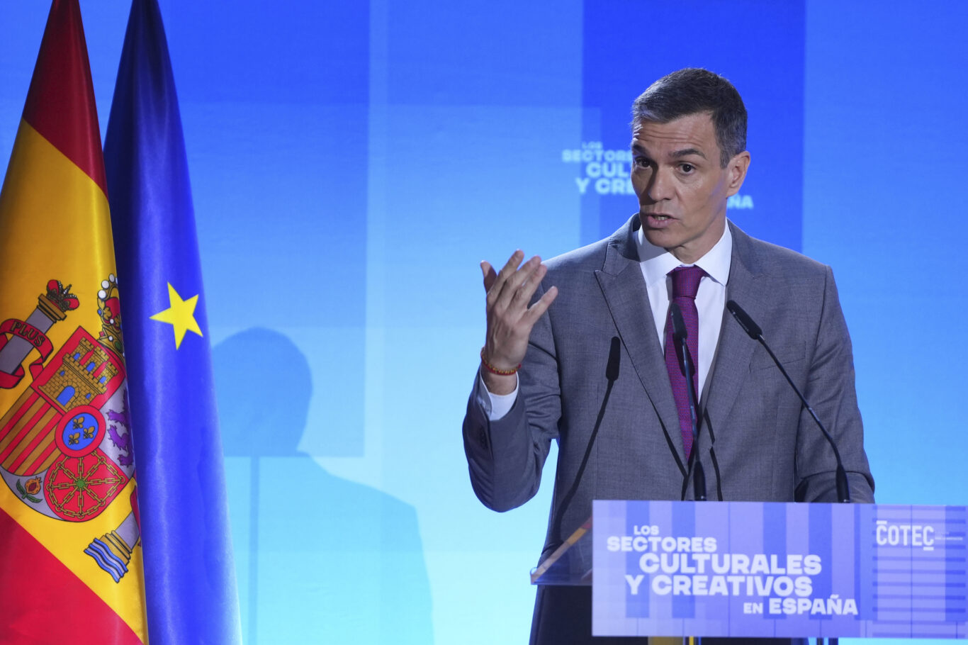 El presidente del Gobierno acudió a la presentación de un informe que la fundación Cotec hacía público sobre la situación de las industrias culturales en España. Allí estuvo Sánchez escoltado por seis ministros de su Gabinete: Yolanda Díaz, vicepresidenta y ministra de Trabajo; José Manuel Albares, ministro de Exteriores; Ernest Urtasun, ministro de Cultura; Óscar López, ministro de Transformación Digital, y Elma Saiz, ministra de Seguridad Social. Y también allí llamó al posicionamiento del sector cultural en debates políticos y sociales, en su mayoría respaldados por Moncloa.
