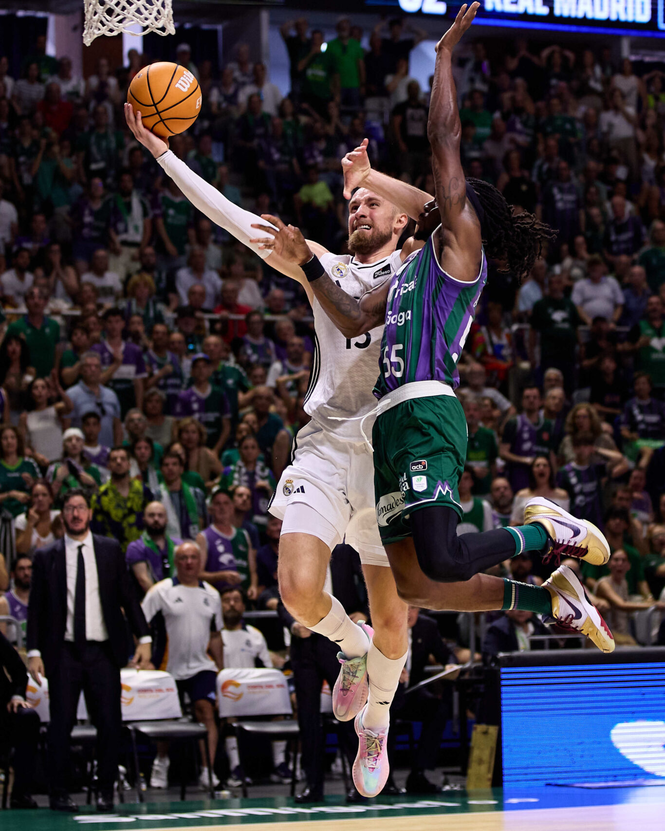 Sumaba el Madrid 24 victorias de carrerilla en ACB y fue en Málaga donde le pararon los pies. Un Unicaja fiero, enrabietado, intratable casi de principio a fin. Porque ahí, en el fin, llegó lo insospechado. Tras una serie de fallos por ambos bandos, una contra con la que Musa se disponía a igualar por primera vez en muchos minutos el duelo y que acabó con palmeo de Garuba, el bosnio impactó con su codo en el rostro de Kendrick Perry. Tras la revisión, que no pudo por norma anular la canasta posterior, llegó la antideportiva y los dos tiros libres con los que Alberto Díaz cerró la angustia.