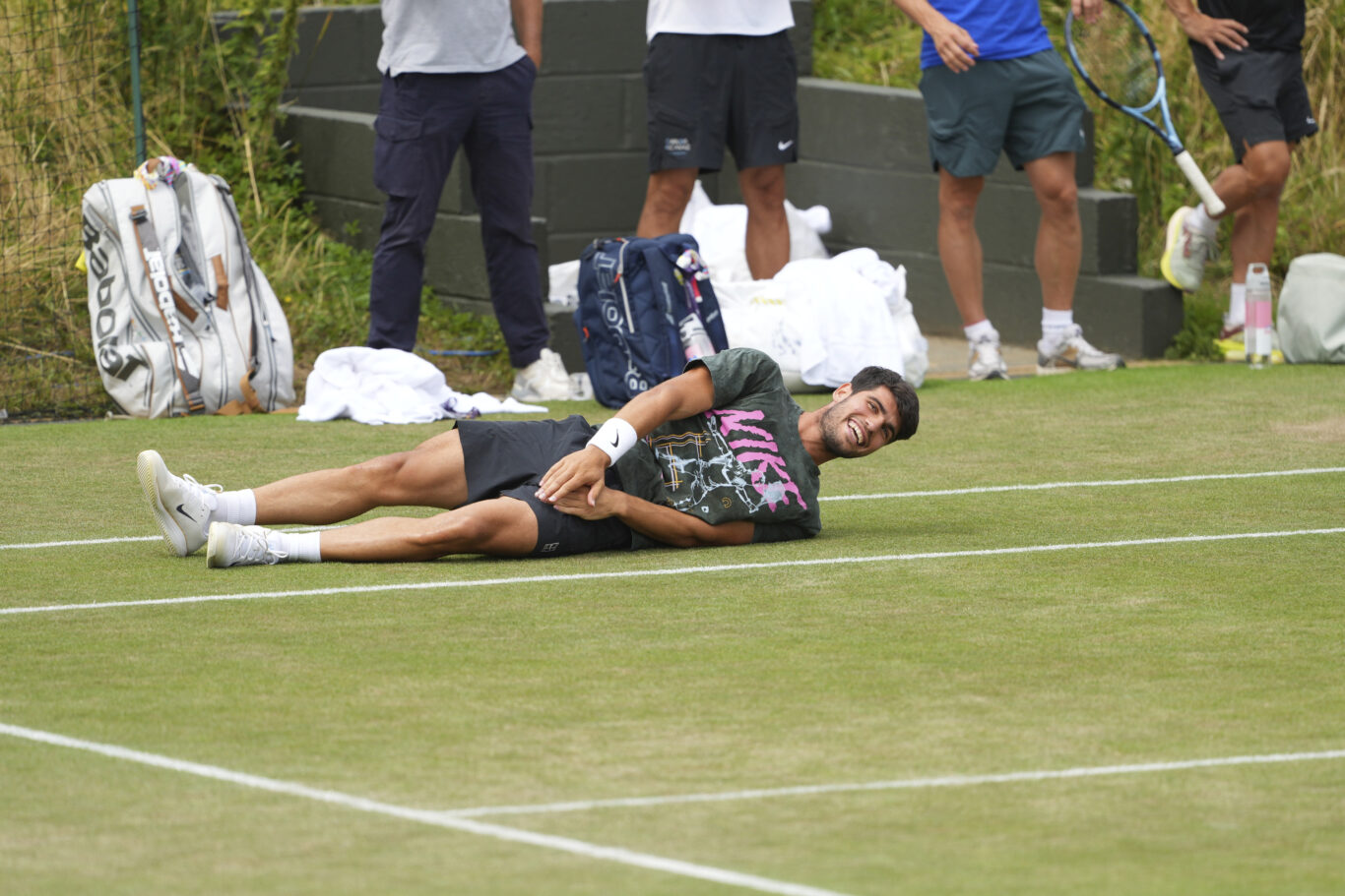 «Esto ya es como en el colegio: estoy todo el rato esperando el recreo», reconoce Carlos Alcaraz después de haber jugado. Al tenis, sí, pero también a otros juegos. Para ser campeón de Wimbledon por tercera vez necesita frescura y, con la experiencia de otros años, su equipo ha encontrado la solución: se divierten. En sus entrenamientos al mediodía en las pistas del Aorangi Park, Alcaraz hace lo que tiene que hacer, derechas, reveses, saques, y cuando ya se ha acabado el trabajo empieza lo mejor.