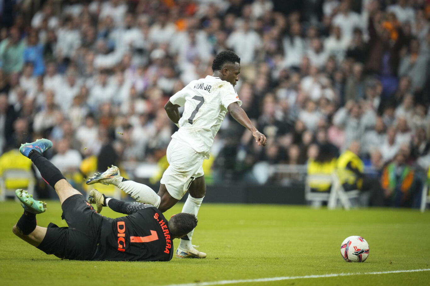 Con Vicente Moreno cumpliendo su sanción desde uno de los palcos, Dani Pendín alentaba a sus muchachos desde el área técnica. Osasuna había desconectado a Vinicius y Mbappé. Durante la primera media hora, la mejor noticia para ambos fue su cifra de fueras de juego: cero. Entonces, cuando peor pintaba, Vinicius se sacó un as bajo la manga. Una maravilla de velocidad y precisión ante Sergio Herrera. Uno de esos goles por los que suspira Mbappé.