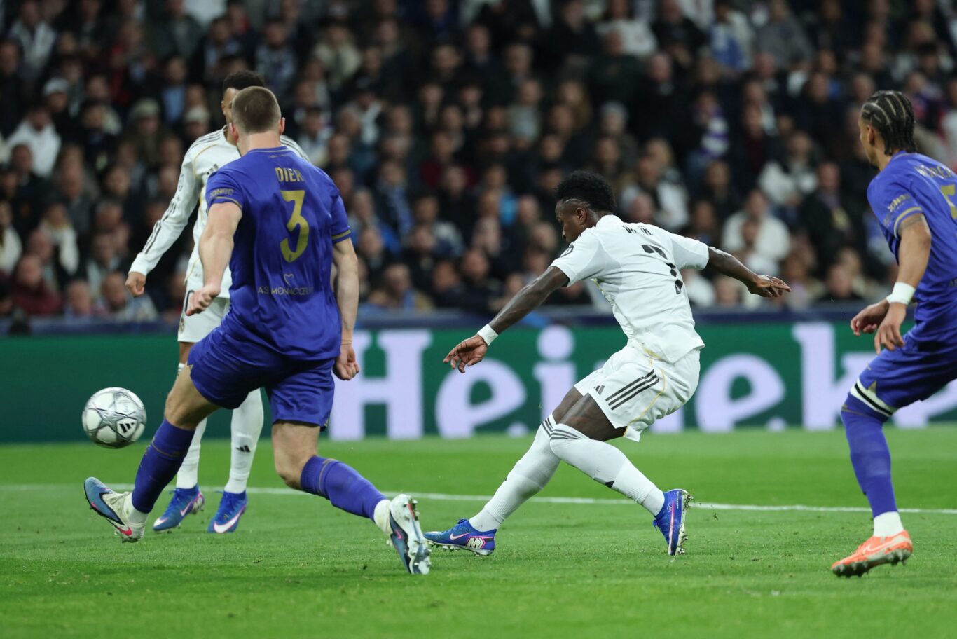 Hubo que esperar a la séptima jornada para disfrutar del primer gol de Vinicius en la presente Champions. Sus dos asistencias frente al Mónaco le allanaron el camino para el MVP de una noche donde redondeó sus números en el gran torneo continental: 30 goles y 30 asistencias en 72 partidos. Tras el caluroso abrazo con Álvaro Arbeloa, la amplia sonrisa frente a los micrófonos, donde admitió haber pasado «unos días muy complicados por los pitos».